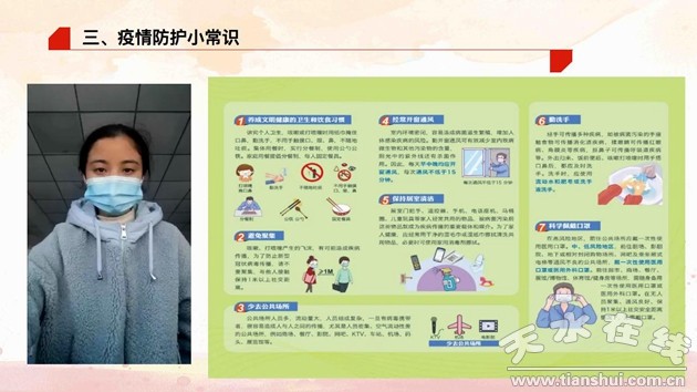 本次“疫情防控思政大課”重點(diǎn)是“堅(jiān)持黨的領(lǐng)導(dǎo)為疫情防控斗爭提供政治保證”“發(fā)揮制度優(yōu)勢,為疫情防控偉大斗爭提供制度保障”“緊緊依靠人民,為疫情防控斗爭夯實(shí)群眾基礎(chǔ)”“激發(fā)斗爭精神,為疫情防控斗爭匯聚不竭動力”等方面說明中國共產(chǎn)黨帶領(lǐng)中國人民進(jìn)行的“抗疫斗爭偉大實(shí)踐,再次證明了中國共產(chǎn)黨所具有的無比堅(jiān)強(qiáng)的領(lǐng)導(dǎo)力,是風(fēng)雨來襲時(shí)中國人民最可靠的主心骨”;同時(shí)結(jié)合本次天水本土疫情發(fā)生以來所涌現(xiàn)的優(yōu)秀典型事例,鼓勵(lì)學(xué)生愛黨、愛國、愛人民情感,堅(jiān)定疫情狙擊戰(zhàn)的信心;并針對學(xué)生在疫情防控過程中出現(xiàn)的心理壓力,提供了保持心理健康的手段和方法。