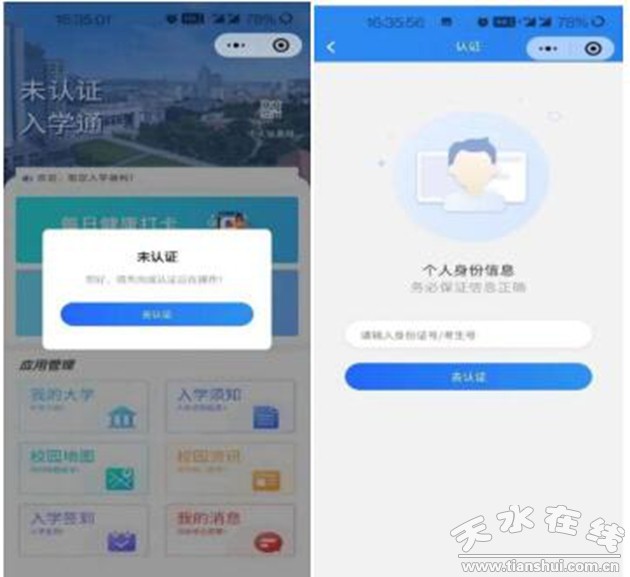 打開小程序,點(diǎn)擊每日健康打卡,系統(tǒng)自動(dòng)彈出身份認(rèn)證框,點(diǎn)擊【去認(rèn)證】