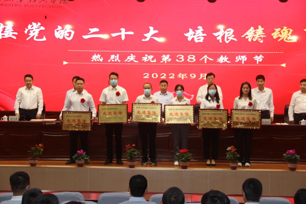 迎接黨的二十大,培根鑄魂育新人。9月9日下午,甘肅林業(yè)職業(yè)技術(shù)學(xué)院隆重舉行慶祝第38個(gè)教師節(jié)暨表彰大會(huì)。黨委副書(shū)記、院長(zhǎng)陳逸平及其他院領(lǐng)導(dǎo)虎保成、許祖生、羅廣元、王瑞元、劉乃君、劉剛、謝小平、賈昌麟出席,獲獎(jiǎng)集體代表、師德先進(jìn)個(gè)人、優(yōu)秀教師、優(yōu)秀教育工作者、優(yōu)秀輔導(dǎo)員和教師代表參加。大會(huì)由黨委書(shū)記高云峰主持。