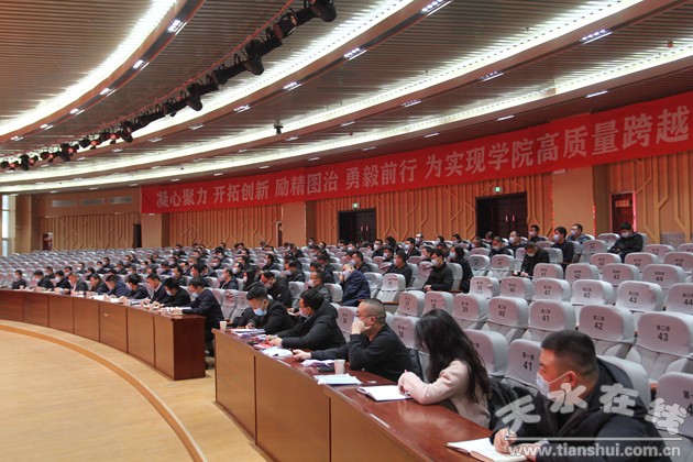 高云峰代表學(xué)院領(lǐng)導(dǎo)班子從“堅持政治統(tǒng)領(lǐng),黨建工作全面提質(zhì)增效;深化內(nèi)涵建設(shè),學(xué)院事業(yè)發(fā)展實現(xiàn)跨越攀升;強化平安校園建設(shè),堅決筑牢校園安全防護網(wǎng);持續(xù)正風(fēng)肅紀,全面從嚴治黨走深走實”等四個方面作了工作匯報。高云峰、陳逸平分別作了個人述職。領(lǐng)導(dǎo)班子其他成員提交了個人書面述職報告。
