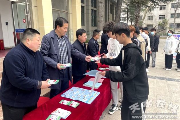 為進一步加強學(xué)校師生禁毒、反詐意識,深化禁毒和防范電信網(wǎng)絡(luò)詐騙宣傳教育工作,促進校園安全穩(wěn)定,3月24日,花牛派出所民警到甘肅工業(yè)職業(yè)技術(shù)學(xué)院開展禁毒、反詐宣傳活動。副院長曹惠清,保衛(wèi)處、學(xué)工處相關(guān)人員參與活動。