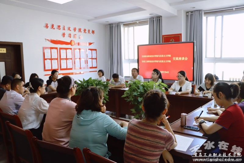 為進(jìn)一步加強(qiáng)與兄弟院校在思政課教學(xué)改革、教師隊(duì)伍建設(shè)和虛擬仿真實(shí)驗(yàn)室建設(shè)等方面的交流互鑒,7月4日下午,甘肅工業(yè)職業(yè)技術(shù)學(xué)院馬克思主義學(xué)院思政課教師一行赴甘肅機(jī)電職業(yè)技術(shù)學(xué)院馬克思主義學(xué)院考察交流。