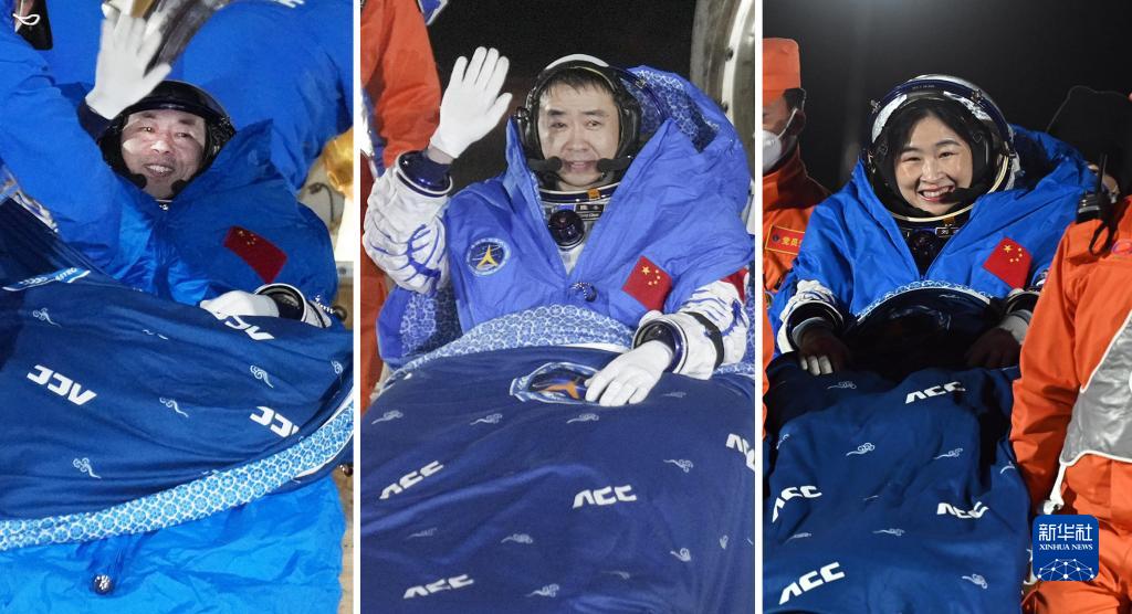 陳冬微笑著向人群揮手,他說(shuō):“6個(gè)月忙碌而又充實(shí)的太空之旅,很有幸見(jiàn)證了中國(guó)空間站基本構(gòu)型建成。我們像流星一樣回到祖國(guó)的懷抱,我為偉大祖國(guó)感到驕傲!