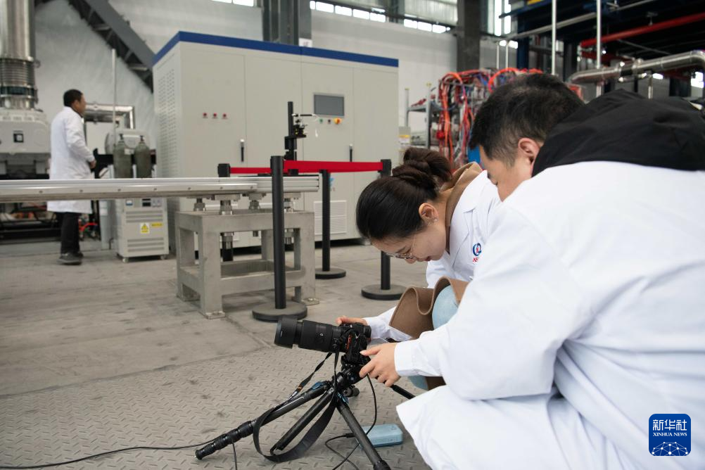 1月14日,在位于安徽省合肥市的聚變堆主機(jī)關(guān)鍵系統(tǒng)綜合研究設(shè)施(CRAFT)園區(qū)內(nèi),科研人員在巡看強(qiáng)流直線等離子體裝置“赤霄”的運(yùn)行狀態(tài)。新華社記者 張端 攝
