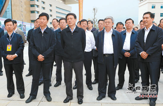 (9月22日,劉偉平帶領(lǐng)全省新建項(xiàng)目現(xiàn)場(chǎng)觀摩團(tuán)在隴南市進(jìn)行項(xiàng)目觀摩考察。本報(bào)記者高檣)