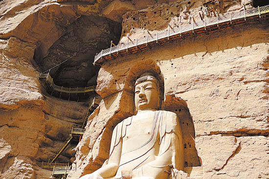 唐代大佛(上方為169窟)。本版圖片攝影:本報記者郁婕