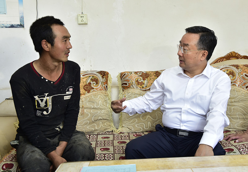 在和政縣城關(guān)鎮(zhèn)咀頭村、卜家莊鄉(xiāng)松樹村,臨夏市枹罕鎮(zhèn)石頭洼村八坊牧業(yè)公司,唐仁健調(diào)研檢查了產(chǎn)業(yè)發(fā)展、易地扶貧搬遷和“3+1”沖刺清零行動落實等情況。唐仁健強(qiáng)調(diào),產(chǎn)業(yè)是貧困群眾穩(wěn)定脫貧的根本,要堅持因地制宜、因勢利導(dǎo),加快壯大特色產(chǎn)業(yè),積極發(fā)展“五小產(chǎn)業(yè)”,強(qiáng)化利益聯(lián)結(jié)機(jī)制,把貧困群眾真正帶到產(chǎn)業(yè)中來。要堅持問題導(dǎo)向,扎實做好“3+1”沖刺清零,堅持全面摸排與隨機(jī)抽查相結(jié)合,一項任務(wù)一項任務(wù)篩查,一個問題一個問題解決,確保無死角、無遺漏,真清零、真托底。唐仁健還詳細(xì)了解了農(nóng)業(yè)綜合保險政策落實及理賠情況。他強(qiáng)調(diào),要充分認(rèn)識農(nóng)業(yè)綜合保險對脫貧攻堅工作的重要意義,加快推動政策實現(xiàn)全覆蓋,最大限度減少群眾因災(zāi)損失,最大限度避免“谷賤傷農(nóng)”“果賤傷農(nóng)”現(xiàn)象發(fā)生。
