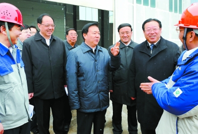 (2月9日至10日,省委書(shū)記、省人大常委會(huì)主任王三運(yùn)在蘭州深入調(diào)研。這是王三運(yùn)在西固區(qū)蘭州藍(lán)星新材料基地考察企業(yè)生產(chǎn)經(jīng)營(yíng)情況。 本報(bào)記者 高 檣)