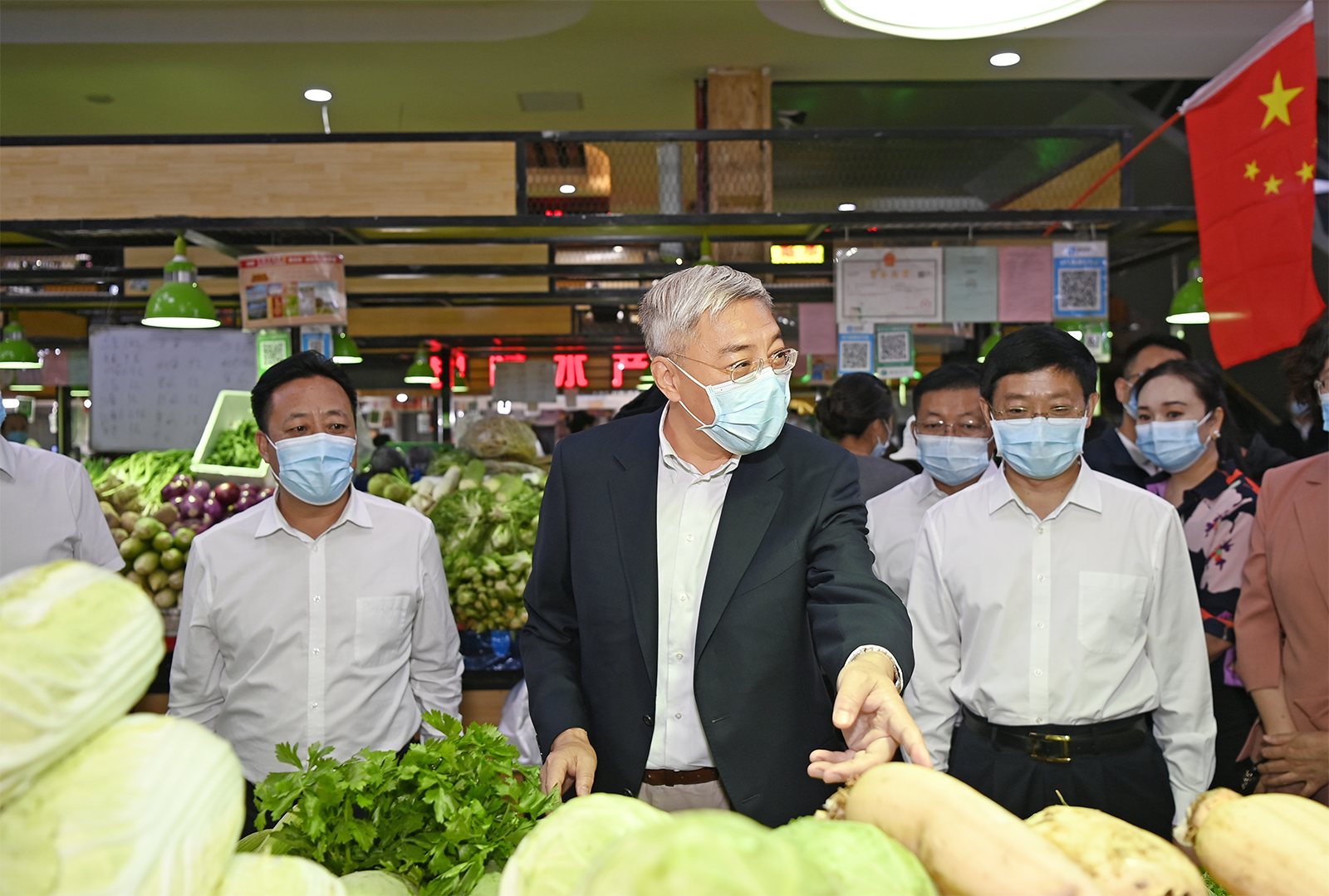 城關(guān)區(qū)五泉菜市場處處洋溢著節(jié)日的氣氛。尹弘走進市場,現(xiàn)場察看疫情防控和食品安全檢測、商品質(zhì)量價格等情況,同商戶、買菜市民和市場管理者親切交流,詳細了解市場供應(yīng)、貨源儲備、經(jīng)營管理、價格穩(wěn)定等情況。他強調(diào),要強化統(tǒng)籌協(xié)調(diào),多渠道組織貨源,全方位優(yōu)化服務(wù),著力豐富商品供應(yīng)種類,確保節(jié)日期間老百姓“米袋子”“菜籃子”“果盤子”物豐價穩(wěn)。要加強食品安全和產(chǎn)品質(zhì)量監(jiān)管、價格監(jiān)管,嚴格落實食品安全主體責(zé)任,加強食品特別是進口冷鏈食品常態(tài)化檢測檢疫,嚴厲查處各種損害消費者權(quán)益的食品問題,守護好人民群眾“舌尖上的安全”。要持續(xù)抓好常態(tài)化疫情防控,毫不放松抓好“外防輸入、內(nèi)防反彈”和“人物同防”各項工作,落實公共場所戴口罩、亮碼測溫、通風(fēng)消毒等健康管理措施,切實保障人民群眾身體健康和生命安全。