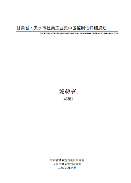 《天水市社棠工業(yè)集中區(qū)控制性詳細(xì)規(guī)劃》(初稿)