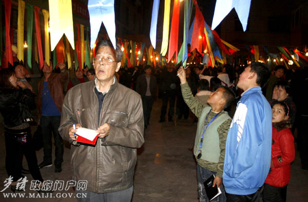 祥虎慶盛世,彩燈迎新春。2月26日(正月十三)晚,麥積區(qū)文化館院內(nèi)人如潮、燈如海,一條條謎面組成的彩帶把院子裝點(diǎn)得格外喜慶,為期三天(正月十三至十五)的麥積區(qū)2010年“祥虎迎春”燈謎晚會(huì)在這里拉開帷幕。