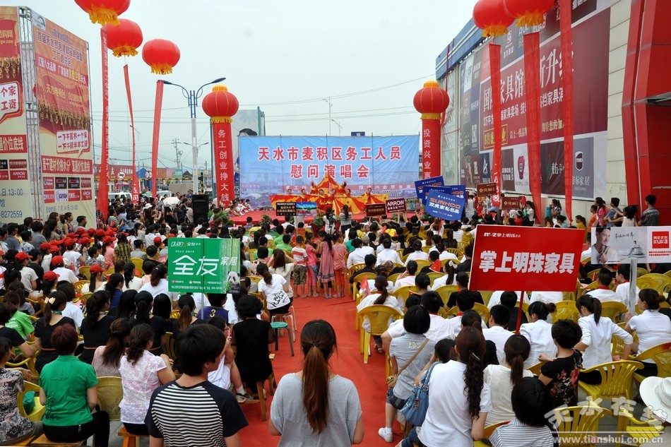7月11日,由麥積區(qū)委、區(qū)政府主辦,區(qū)人社局、區(qū)教體局、區(qū)總工會(huì)、區(qū)婦聯(lián)承辦,天水橋南家居建材城協(xié)辦的“天水市麥積區(qū)務(wù)工人員慰問(wèn)演唱會(huì)暨勞務(wù)政策信息宣傳咨詢服務(wù)活動(dòng)”在天水橋南家居建材城隆重舉行。