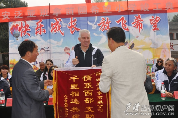 9月21日,麥積區(qū)伯陽(yáng)鎮(zhèn)保安村泛亞班拿苗圃希望小學(xué)人頭攢動(dòng),鞭炮齊鳴,熱鬧非凡,該?⒐さ涠Y在這里隆重舉行。