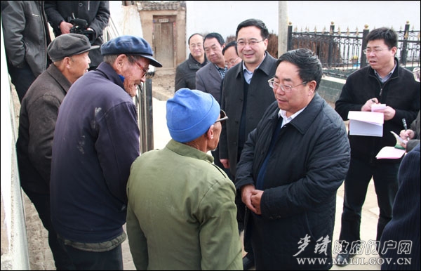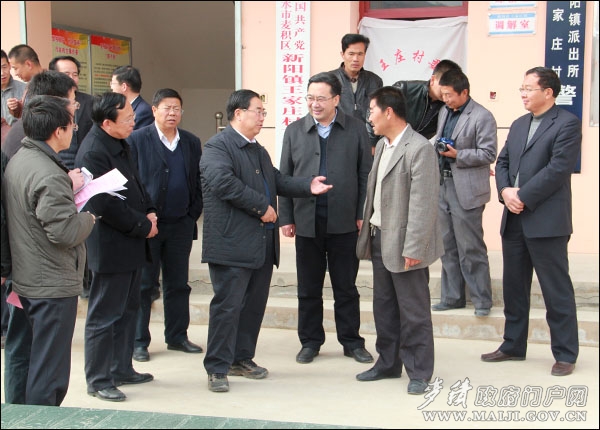 11月10日,正值黨的十八大勝利召開之際,為了進一步檢查“雙聯(lián)”階段性成效,督促加快脫貧致富步伐,以顯著的“雙聯(lián)”成效向黨的十八大獻禮。省委農(nóng)工辦、省委“雙聯(lián)”辦主任王義深入麥積區(qū)新陽鎮(zhèn)王家莊督查調(diào)研“雙聯(lián)”行動開展情況。市委農(nóng)工部部長、市雙聯(lián)辦綜合組組長張廷剛,區(qū)委書記張智明,區(qū)人大常委會主任賈應(yīng)珍,區(qū)政協(xié)主席楊續(xù)祥,區(qū)委副書記張思佳,副區(qū)長王彥軍等陪同督查。