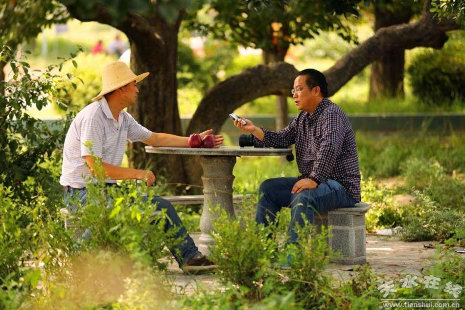 ▲圖為甘肅省第十二次黨代會代表、天水市麥積區(qū)花牛鎮(zhèn)南山萬畝花牛蘋果協(xié)會黨支部書記兼會長武正權(quán)接受采訪
