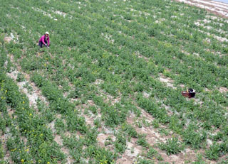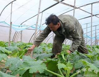 “今年我們種植了130多個(gè)大棚,其中甜瓜棚40多個(gè),芹菜棚90多個(gè),估計(jì)6月份就可上市!崩顟训缹(duì)記者介紹說(shuō)!盎卦谡惺展と藭r(shí),采取就近用工的原則,會(huì)優(yōu)先聘用將土地流轉(zhuǎn)給基地的村民,目前,像劉育英這樣在基地打工的村民有將近50人。”