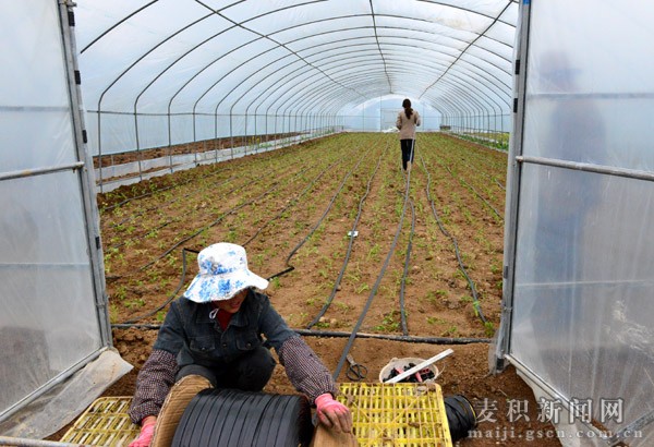 年近40歲的劉育英是渭南鎮(zhèn)張?jiān)迦?從大棚基地建立之初就在這里打工,當(dāng)初,她把自家的2畝多地流轉(zhuǎn)給了基地,一畝地一年可拿到900多元的租金。此外,她還在基地打工,一天能收入50元錢(qián)。“我算了一下,加上土地租金,再加上常年在基地打工的工資,我每年能拿到近兩萬(wàn)塊錢(qián),并且離家近,還能照顧家里,兩不耽誤。”劉育英邊手腳麻利地栽植芹菜邊笑呵呵地對(duì)記者說(shuō)。