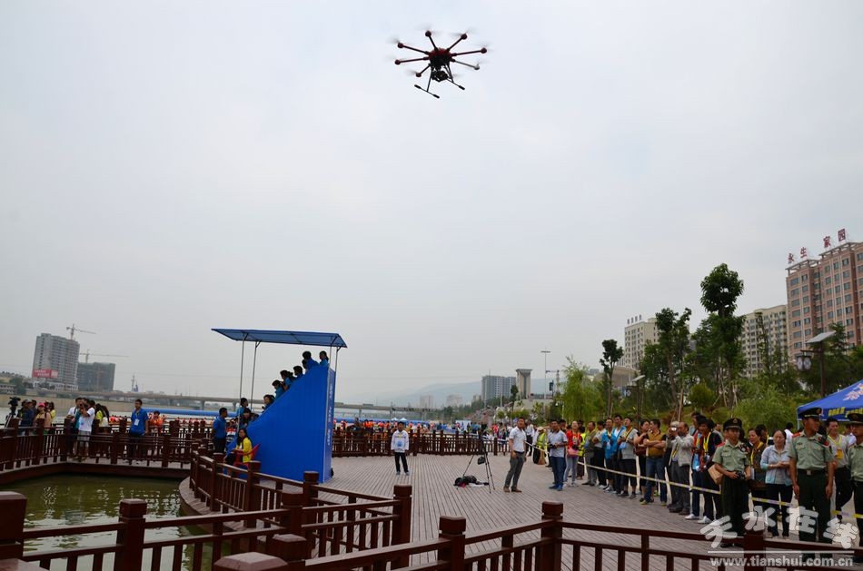 (天水在線無人機正在航拍天水端午龍舟賽)