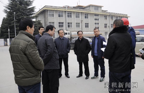 1月27日,由甘肅省安監(jiān)局副局長王貴玉帶領的安全生產(chǎn)檢查組一行來麥積區(qū)檢查指導安全生產(chǎn)工作。天水市安監(jiān)局局長崔玉軍,麥積區(qū)委副書記、區(qū)長成少平,副區(qū)長楊根林一同檢查。