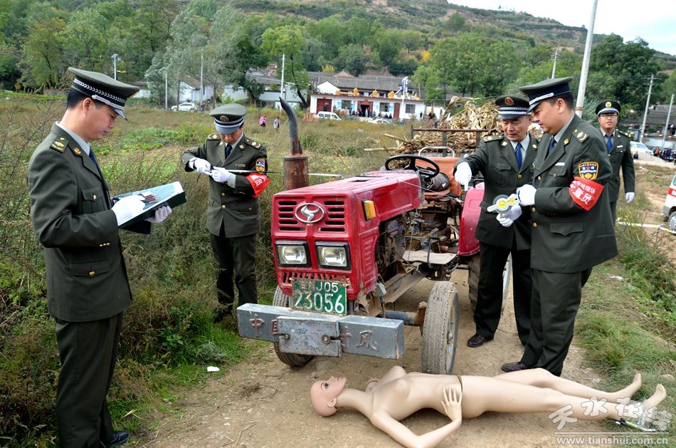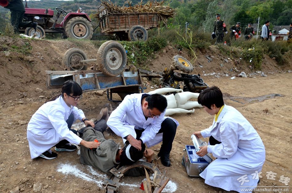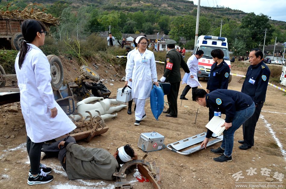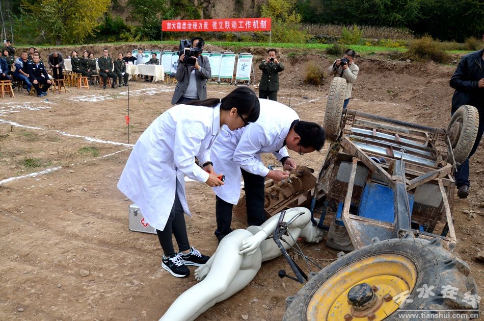 10月19日,由天水市農(nóng)業(yè)局、天水市麥積區(qū)人民政府主辦,天水市農(nóng)機(jī)監(jiān)理所、天水市麥積區(qū)農(nóng)業(yè)局承辦的全市2016農(nóng)機(jī)安全事故應(yīng)急處置聯(lián)合演練現(xiàn)場會在麥積區(qū)甘泉鎮(zhèn)甘江村召開。省農(nóng)機(jī)監(jiān)理總站副站長宋天林、調(diào)研員李應(yīng)強(qiáng),市農(nóng)業(yè)局局長逯國文、副局長李文俊,市安監(jiān)局、市衛(wèi)計(jì)局、市公安交警支隊(duì)、市政府應(yīng)急辦相關(guān)負(fù)責(zé)人;各縣(區(qū))農(nóng)業(yè)(農(nóng)機(jī))局分管領(lǐng)導(dǎo)、農(nóng)機(jī)監(jiān)理站站長及事故處理員,麥積區(qū)政府副區(qū)長郭大偉、麥積區(qū)安監(jiān)局、衛(wèi)計(jì)局、公安分局、文廣局、交警大隊(duì)、農(nóng)業(yè)局等部門負(fù)責(zé)人、甘泉鎮(zhèn)政府領(lǐng)導(dǎo)及鄉(xiāng)鎮(zhèn)安監(jiān)站農(nóng)機(jī)安全監(jiān)管人員、甘泉鎮(zhèn)各村委會農(nóng)機(jī)安全管理人員共計(jì)100余人參加了現(xiàn)場演練觀摩活動。