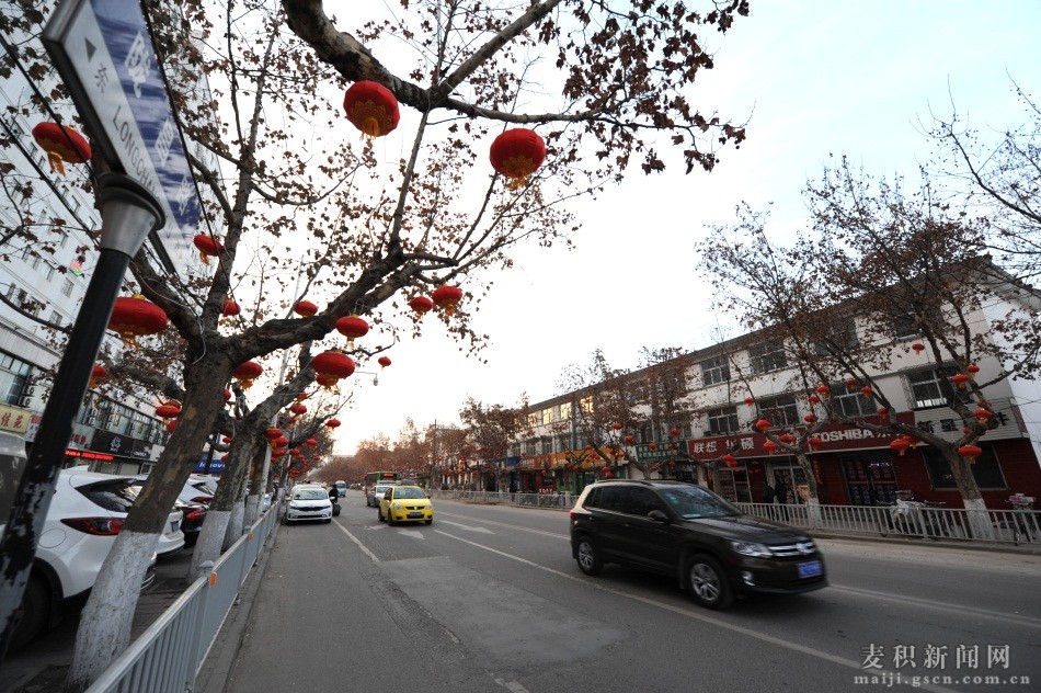 麥積區(qū)積極開展春節(jié)節(jié)日氛圍營造和街景布置工作,在城區(qū)主要街道、重要路口、人群集中地等醒目位置,懸掛春節(jié)宣傳版面、檢修路燈、懸掛燈籠串燈、裝飾LED中國結(jié)吉祥飾品等營造歡樂祥和的春節(jié)氛圍。放眼望去,一片片紅色縈繞在半空中,讓整個街道、城區(qū)都洋溢著節(jié)日的喜慶氣氛。