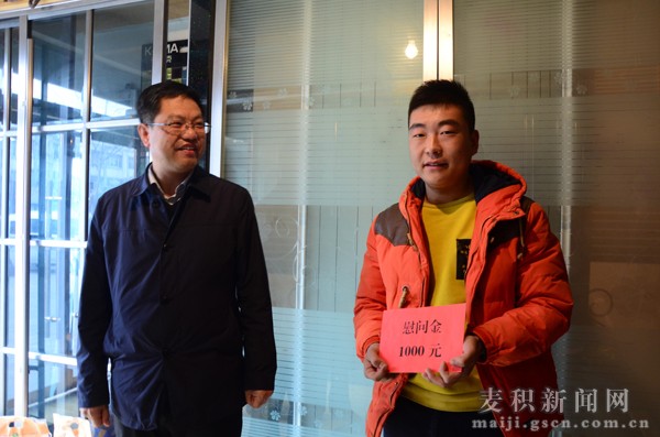 近日,天水市見義勇為協(xié)會(huì)常務(wù)副會(huì)長(zhǎng)李景春、副會(huì)長(zhǎng)張學(xué)民、秘書長(zhǎng)張治平一行3人,在區(qū)委常委、政法委書記杜崢嶸和區(qū)見義勇為協(xié)會(huì)有關(guān)負(fù)責(zé)人的陪同下,深入麥積區(qū)橋南建材市場(chǎng),親切慰問了全省見義勇為先進(jìn)分子——麥積區(qū)馬跑泉鎮(zhèn)胡王村青年周維,送去了慰問金和慰問品,送去了黨和政府的溫暖與關(guān)懷。