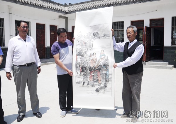 視察組一行先后深入到社棠鎮(zhèn)郭坪村,麥積鎮(zhèn)紅崖村、麥積村等地,通過實地查看、聽取匯報、座談交流等方式,全面了解了近年來麥積區(qū)脫貧攻堅工作、富民產(chǎn)業(yè)培育、基礎(chǔ)設(shè)施建設(shè)進(jìn)展情況,并為村文化室贈送書畫作品。