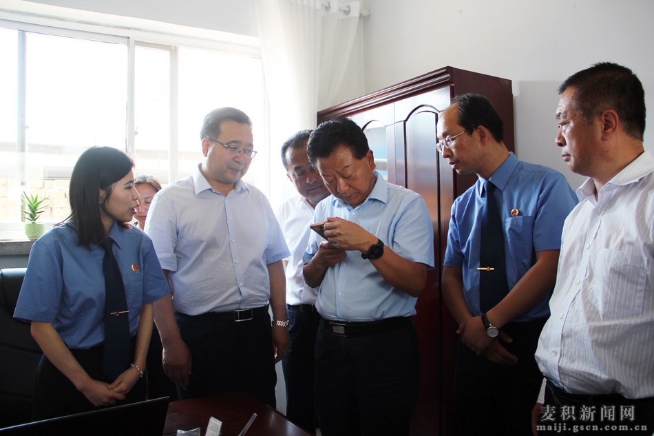 路志強一行先后深入到麥積區(qū)檢察院、橋南街道辦事處檢察室、花牛鎮(zhèn)檢察室等地,通過聽取匯報、查閱資料、交談詢問等方式,對麥積區(qū)鄉(xiāng)鎮(zhèn)(街道)檢察室建設(shè)及工作開展情況進行了詳細調(diào)研,現(xiàn)場查看了麥積區(qū)人民檢察院涉農(nóng)、惠農(nóng)資金發(fā)放信息監(jiān)察平臺運行情況,并對麥積區(qū)工作給予了充分肯定。