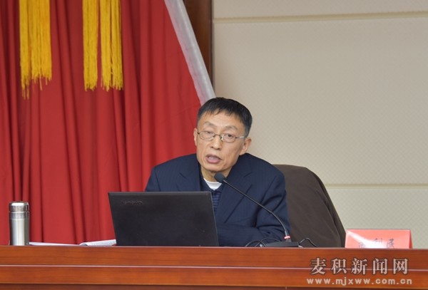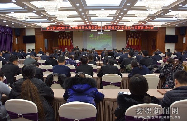 12月8日,學習貫徹黨的十九大精神天水市委講師團宣講報告會在甘肅省萬達實業(yè)總公司舉行。市委講師團成員、市委黨校副教授孟利民以《引領(lǐng)新時代,開啟新征程,繪就新藍圖》為題作了專題報告。 麥積區(qū)委宣傳部負責人參加宣講會。