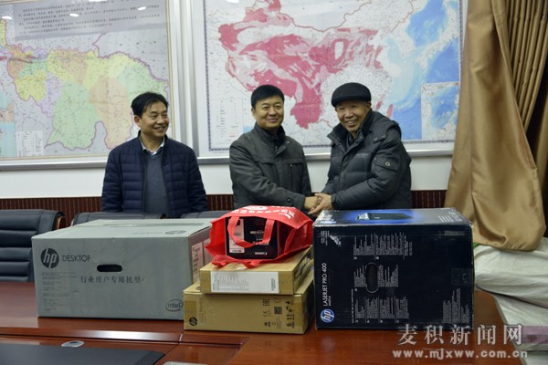 石玉成代表省地震局對麥積區(qū)地震局送去了春節(jié)祝福和良好祝愿,并給麥積區(qū)地震局贈送了電腦、投影機(jī)、打印機(jī)、照相機(jī)等慰問品。
