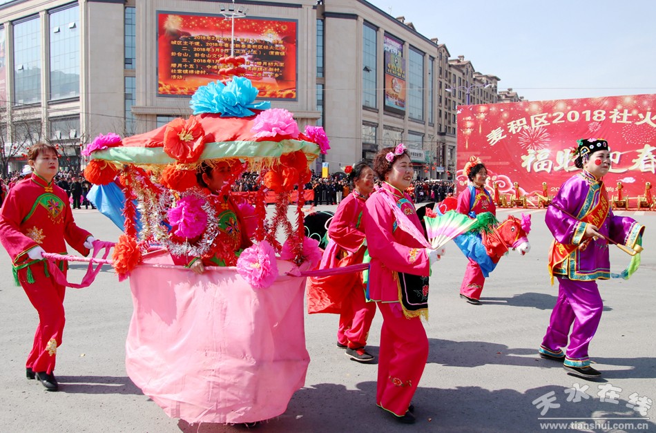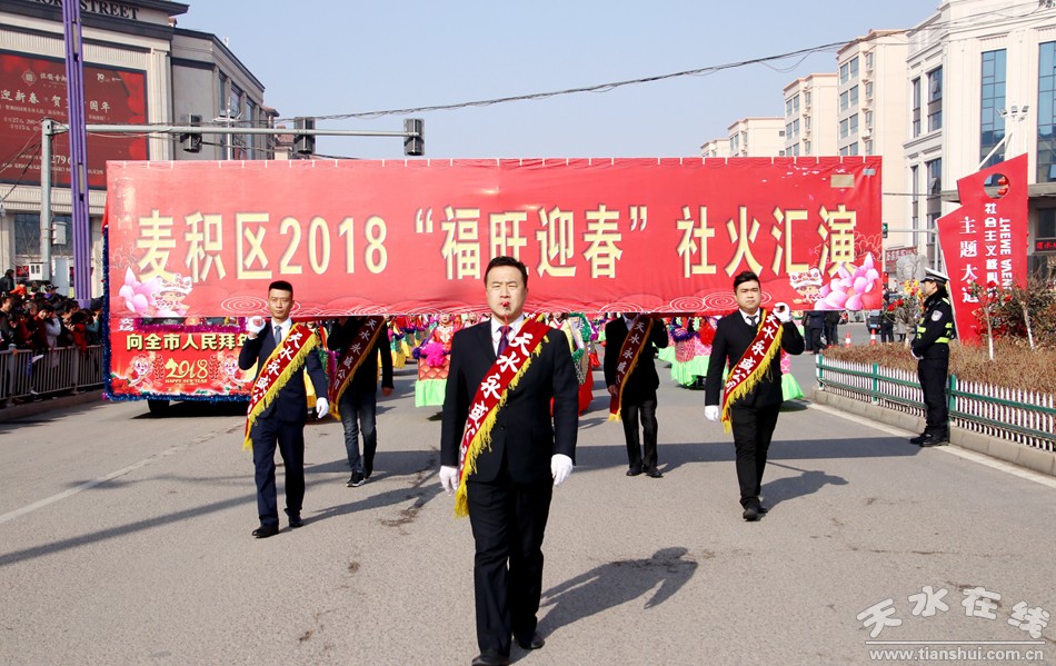 震天的鑼鼓敲起來、歡快的秧歌扭起來。2月28日,農(nóng)歷正月十三,麥積區(qū)2018年“福旺迎春”社火匯演在鏗鏘有力的鑼鼓聲中熱鬧舉行,把濃濃的過年氣氛再次推向高潮,獻上了一道豐盛的節(jié)日文化大餐,為全區(qū)人民送上了一場最精彩、最有味兒的新春祝福。
