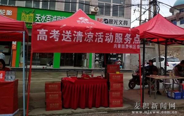一年一度的高考是社會(huì)普遍關(guān)注的熱點(diǎn)大事,牽動(dòng)著億萬學(xué)子和父母的心。6月7日至8日,由共青團(tuán)麥積區(qū)委組織發(fā)起的“高考送清涼”公益志愿服務(wù)活動(dòng)在天水市第二中學(xué)、第八中學(xué)、第九中學(xué)考點(diǎn)有序開展。