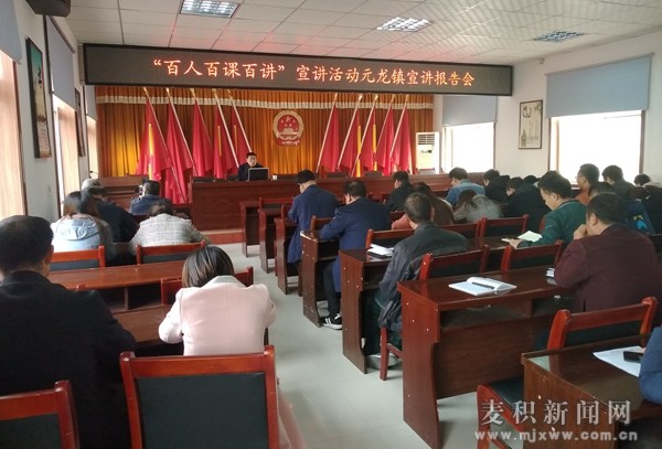 元龍鎮(zhèn) 為了更好的推動學(xué)習(xí)宣傳習(xí)近平新時代中國特色社會主義思想和黨的十九大精神,按照麥積區(qū)委宣傳部《關(guān)于組織開展全區(qū)2018年度理論學(xué)習(xí)宣講工作的通知》精神,10月25日上午,麥積區(qū)元龍鎮(zhèn)舉行“百人百課百講”系列宣講活動報告會。報告會特邀天水市委宣講團(tuán)成員、天水師院副教授王喜明授課,以“實(shí)施鄉(xiāng)村振興戰(zhàn)略”為主題的報告會,鎮(zhèn)村干部共60余人參加報告會。
