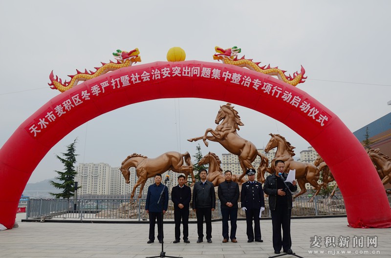 區(qū)委常委、政法委書記杜崢嶸宣布天水市麥積區(qū)冬季嚴(yán)打暨社會治安突出問題集中整治專項(xiàng)行動啟動,區(qū)人大副主任吳建武,區(qū)政府副區(qū)長杜根祥,區(qū)政協(xié)副主席成映平等出席啟動儀式。