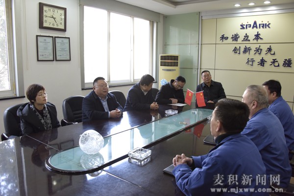 趙繼文一行先后深入到天水段壓機(jī)床有限公司、蘭州銀行、龍?zhí)┙ㄖ、建設(shè)銀行、浩天置業(yè)公司、天水黃河嘉釀啤酒有限公司、星火機(jī)床有限公司、天水華建混凝土公司、中石油天然氣公司甘肅天水銷(xiāo)售分公司、天水宇泰建筑公司、天河建筑公司、冀東水泥銅川公司天水分公司等處走訪慰問(wèn)。每到一處,趙繼文都與企業(yè)、單位負(fù)責(zé)人親切交談,詳細(xì)詢(xún)問(wèn)了解企業(yè)生產(chǎn)經(jīng)營(yíng)情況和職工生活狀況,以及今后的發(fā)展思路和發(fā)展目標(biāo)等。趙繼文代表區(qū)四大組織對(duì)相關(guān)企業(yè)、單位一年來(lái)為麥積區(qū)經(jīng)濟(jì)社會(huì)發(fā)展所作出的貢獻(xiàn)表示衷心感謝,向企業(yè)負(fù)責(zé)人及廣大企業(yè)員工致以新春祝福及美好祝愿,并希望企業(yè)在新的一年里,再接再厲,努力奮進(jìn),攻堅(jiān)克難,再創(chuàng)佳績(jī),積極為麥積區(qū)經(jīng)濟(jì)社會(huì)發(fā)展做出新的更大的貢獻(xiàn)。同時(shí)表示,區(qū)委、區(qū)政府將一如既往地支持企業(yè)的發(fā)展,繼續(xù)為企業(yè)做好服務(wù)工作,解除企業(yè)的后顧之憂,努力為企業(yè)發(fā)展壯大營(yíng)造良好的環(huán)境氛圍。