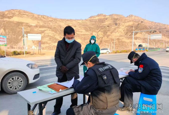 麥積融媒體中心訊 疫情就是命令,防控就是責(zé)任。連日來(lái),在麥甘公路琥珀與甘谷交界段,由反恐特警、公安、交警、醫(yī)療人員對(duì)從甘谷方向進(jìn)入麥積的所有車輛上的人員,進(jìn)行逐一排查登記,體溫測(cè)量,24小時(shí)堅(jiān)守崗位,嚴(yán)防死守,防止疫情擴(kuò)散。