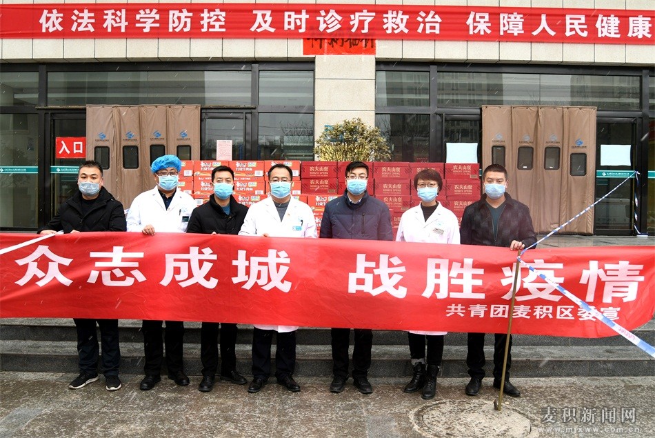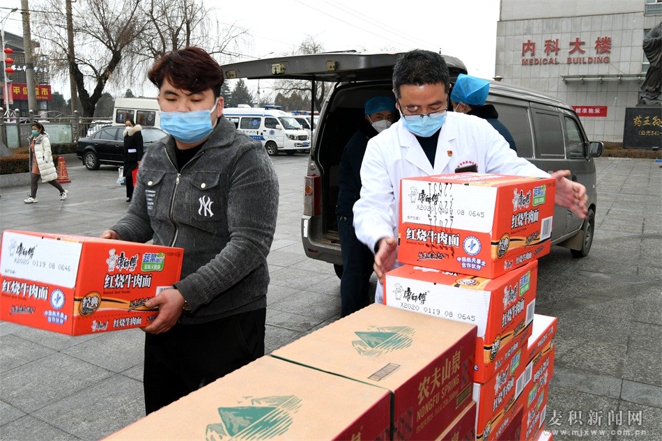 麥積區(qū)融媒體中心訊(特約記者 竇耀輝)面對洶涌而來的疫情,2月5日,共青團(tuán)麥積區(qū)委攜手天水老家八大碗民俗餐飲店、金水岸酒店、湘潭小廚等愛心企業(yè),為奮戰(zhàn)在抗“疫”一線的天水市中西醫(yī)結(jié)合醫(yī)院、天水市第四人民醫(yī)院的白衣天使送去了100箱方便面、100件礦泉水,用實際行動詮釋了愛心企業(yè)心系醫(yī)護(hù)人員,助力疫情防控,傳遞人間真情,為堅決打贏疫情防控阻擊戰(zhàn)貢獻(xiàn)青春力量。