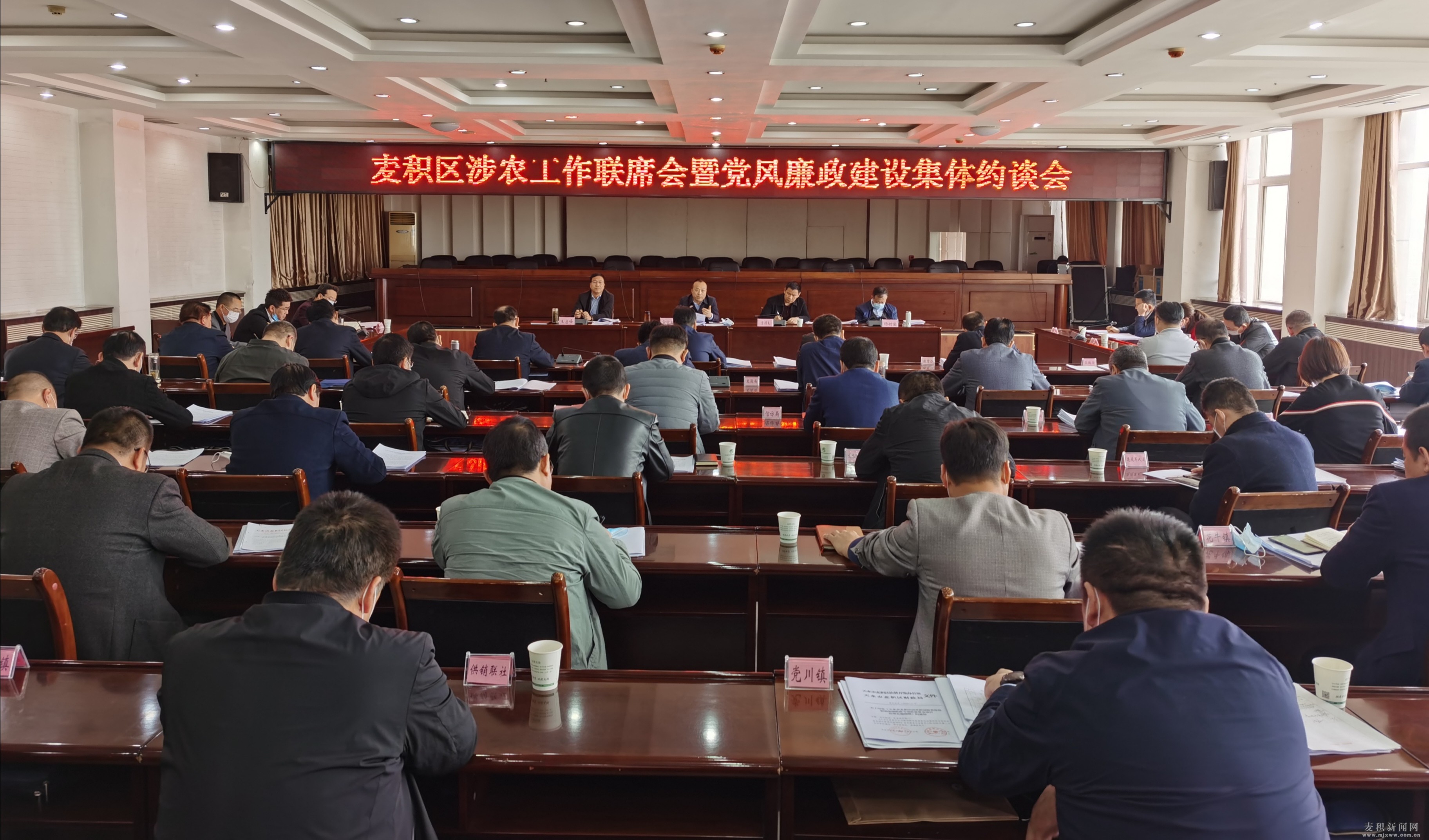 麥積區(qū)融媒體中心訊(記者 龍?jiān)骑w)3月27日,麥積區(qū)召開涉農(nóng)工作聯(lián)席會(huì)暨黨風(fēng)廉政建設(shè)集體約談會(huì)。區(qū)委副書記霍定明、區(qū)人大常委會(huì)副主任竇順良、區(qū)政協(xié)副主席楊樹棠出席會(huì)議,副區(qū)長(zhǎng)王啟峰主持會(huì)議。