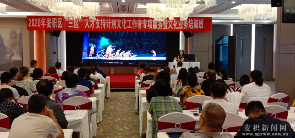 為提高基層文化工作者綜合素質(zhì)和專業(yè)水平,使“三區(qū)人才”支持計(jì)劃文化工作有效開展,提高群眾對(duì)基層文化服務(wù)的滿意度和群眾對(duì)文化扶貧知曉度。9月7日至10日,麥積區(qū)文旅局組織舉辦2020年“三區(qū)人才”支持計(jì)劃文化工作者專項(xiàng)服務(wù)暨文化業(yè)務(wù)培訓(xùn)班。來(lái)自全區(qū)17個(gè)鎮(zhèn)的“三區(qū)人才”支持計(jì)劃文化工作者、文化站長(zhǎng)及街道辦文化專干近70人參加培訓(xùn)。