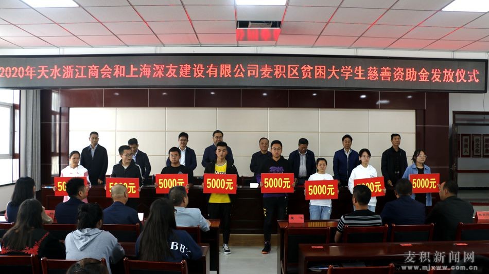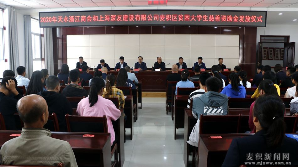 麥積區(qū)融媒體中心訊(記者 丁承志 劉秋鈺)9月15日上午,麥積區(qū)在新陽鎮(zhèn)舉行2020年天水浙江商會和上海深友建設(shè)有限公司麥積區(qū)貧困大學生慈善資助金發(fā)放儀式。市政協(xié)副主席、區(qū)委書記張智明,市政協(xié)原副主席、慈善總會會長王欽錫出席發(fā)放儀式。區(qū)人大常委會原主任、慈善協(xié)會會長賈應珍,區(qū)委常委、組織部部長杜根祥,區(qū)政協(xié)副主席張福元,區(qū)人大常委會原副主任、慈善協(xié)會副會長李加峰參加發(fā)放儀式。區(qū)人大常委會副主任劉海鷹主持發(fā)放儀式。