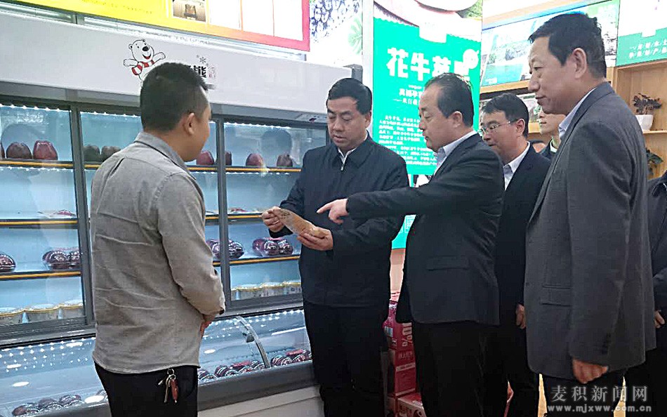 麥積區(qū)融媒體中心訊 10月20日,天水市政府副市長逯克宗和麥積區(qū)委副書記、區(qū)長成少平來到麥積區(qū)特色農(nóng)產(chǎn)品消費扶貧生活館調(diào)研運營情況。市農(nóng)業(yè)農(nóng)村局局長、二級巡視員逯國文,麥積區(qū)副區(qū)長張樹增一同調(diào)研。
