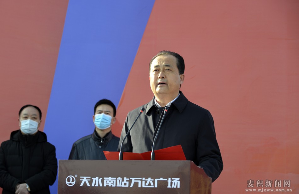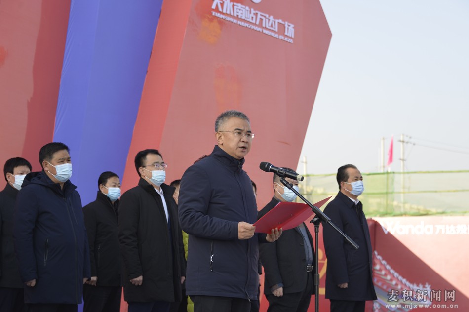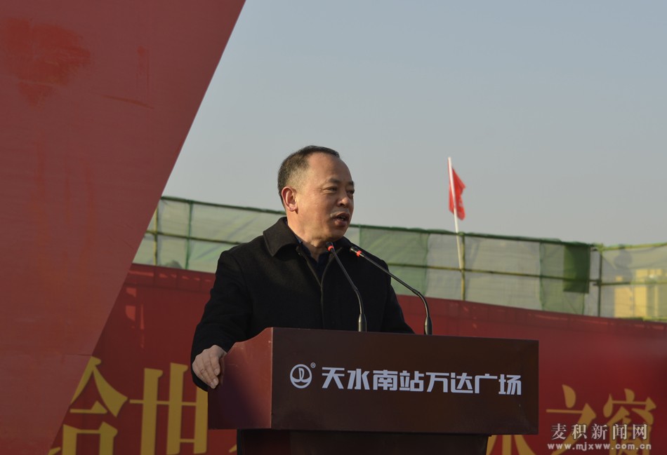 王軍代表天水市四大組織向天水南站萬達廣場項目的奠基表示祝賀。他說,天水南站萬達廣場項目正式落地,對于進一步完善天水城市功能、提升城市品位、刷新商業(yè)業(yè)態(tài)、集聚區(qū)域人氣,加快建設(shè)百萬人口的省域副中心城市和隴東南現(xiàn)代商貿(mào)服務(wù)中心,具有重要意義。希望萬達集團能夠總結(jié)發(fā)揚秦州區(qū)萬達廣場項目建設(shè)的有益經(jīng)驗,樹立精品意識,堅持“快”字當頭,進一步完善項目建設(shè)管理模式,充分發(fā)揮資金、技術(shù)、人才和經(jīng)營方面的獨特優(yōu)勢,高起點規(guī)劃、高標準建設(shè)、高效率推進,努力把天水南站萬達廣場建設(shè)成為我市新興商業(yè)核心區(qū),著力打造功能齊備、交通便捷、活力四射的“城市會客廳”,讓兩個萬達廣場在天水交相輝映、熠熠生輝。施工單位和監(jiān)理單位要統(tǒng)籌質(zhì)量、效益、安全和疫情防控,科學(xué)施工、文明施工、安全施工。麥積區(qū)政府和市直相關(guān)部門要自覺增強主人翁意識,主動靠前服務(wù),及時協(xié)調(diào)解決困難問題,全力做好“店小二”,為項目營造良好的建設(shè)環(huán)境,共同促進天水南站萬達廣場項目早日建成、早日運營、早日發(fā)揮效益。