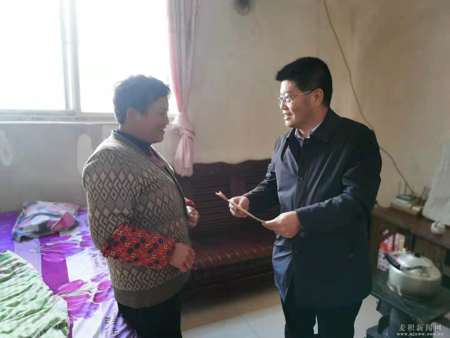 麥積融媒體中心訊 2月3日,麥積區(qū)政府副區(qū)長(zhǎng)溫建平赴社棠鎮(zhèn)俊林村、石嶺村看望慰問(wèn)困難群眾,為他們送上春節(jié)的祝福與慰問(wèn),并送去了慰問(wèn)金。