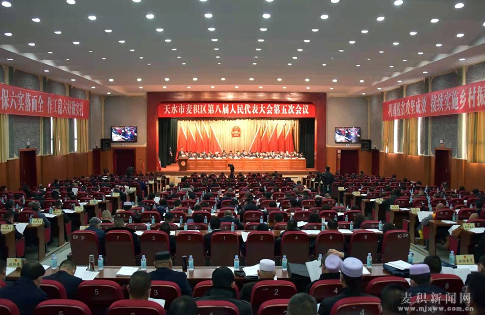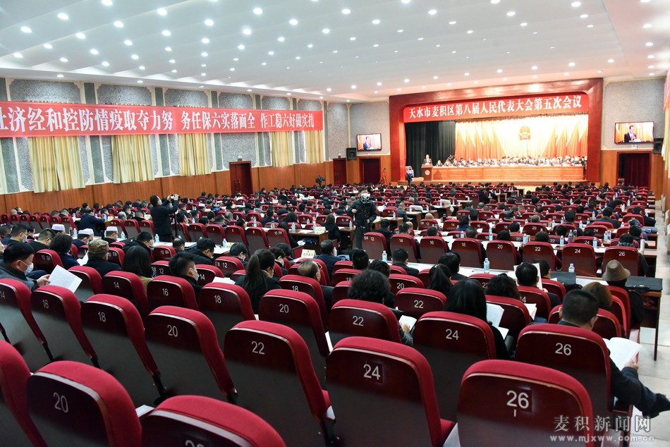 區(qū)政府禮堂內(nèi)莊嚴簡樸、氣氛熱烈。主席臺帷幕中央國徽高懸,十面紅旗分列兩側(cè),禮堂兩側(cè)懸掛“鞏固脫貧攻堅成效、接續(xù)實施鄉(xiāng)村振興、奮力開創(chuàng)麥積發(fā)展建設(shè)新局面;扎實做好六穩(wěn)工作、全面落實六保任務(wù)、努力奪取疫情防控和經(jīng)濟社會發(fā)展雙勝利”的標語,格外醒目。