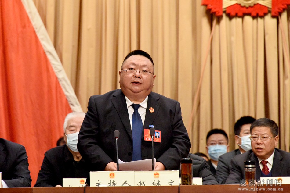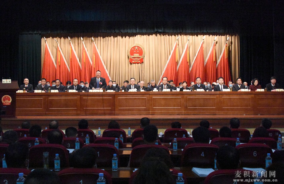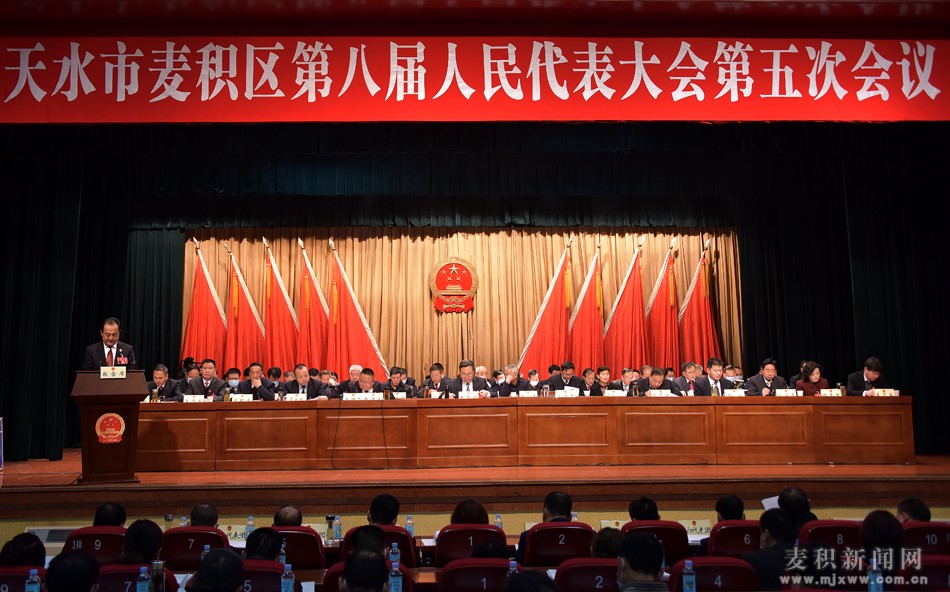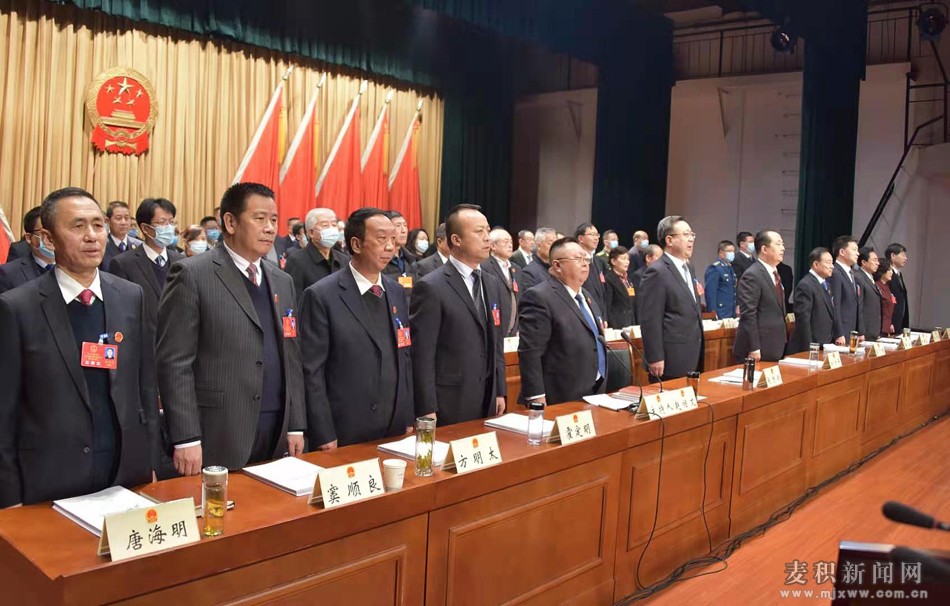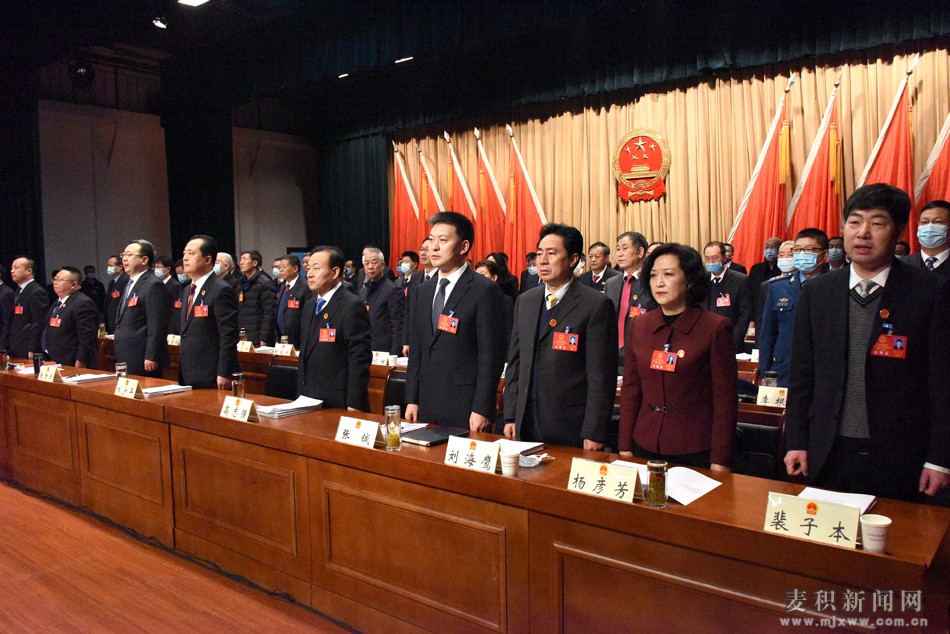 上午9時,趙繼文宣布:天水市麥積區(qū)第八屆人民代表大會第五次會議開幕!全體起立,奏唱國歌。