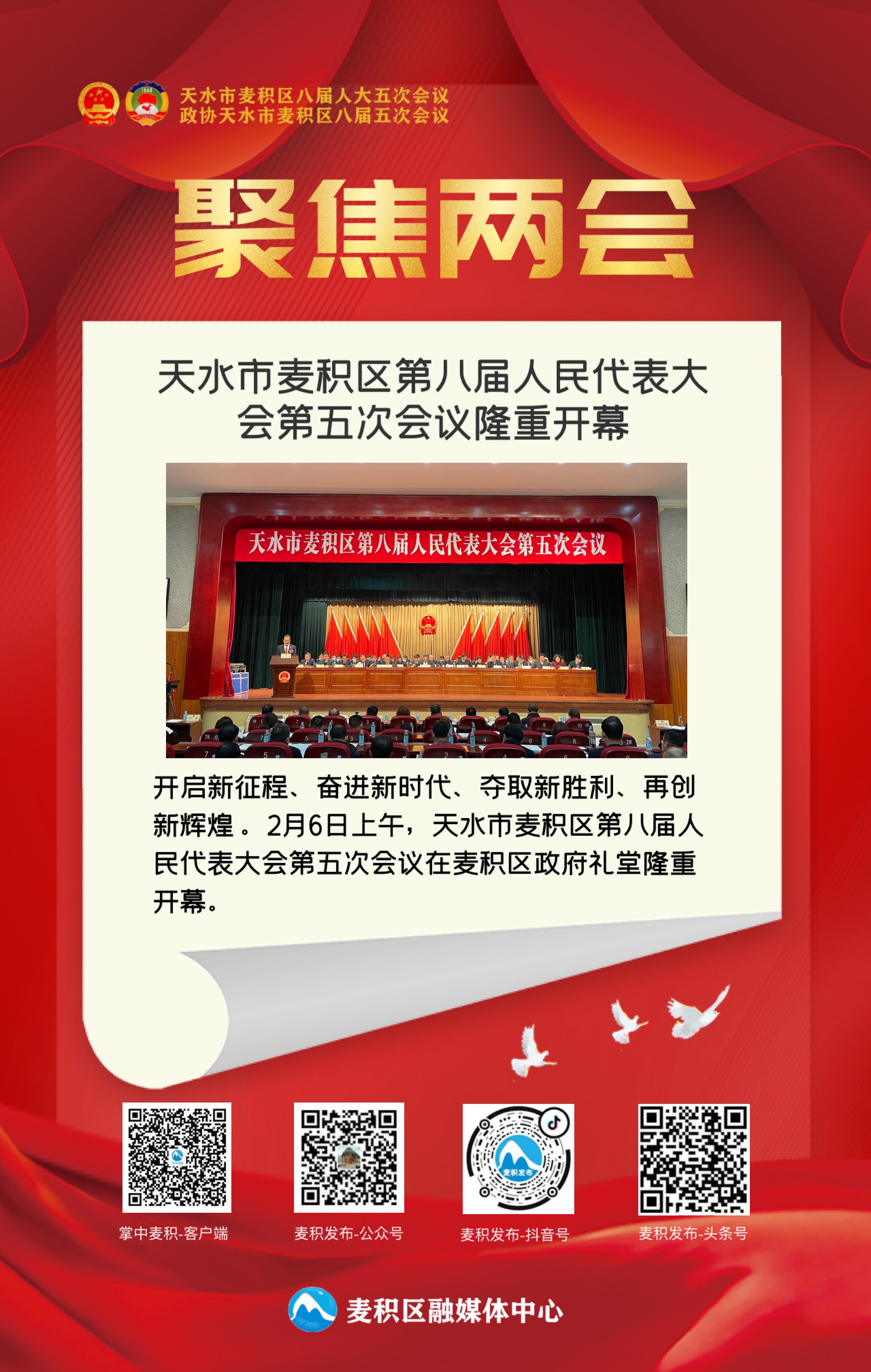 麥積區(qū)融媒體中心訊 開啟新征程、奮進新時代。2月6日上午,備受關(guān)注的麥積區(qū)第八屆人民代表大會第五次會議在區(qū)政府禮堂隆重開幕。來自全區(qū)各行各業(yè)、各條戰(zhàn)線的200多名區(qū)人大代表出席大會,牢記初心使命、肩負人民重托,認真履行憲法和法律賦予的神圣職責。