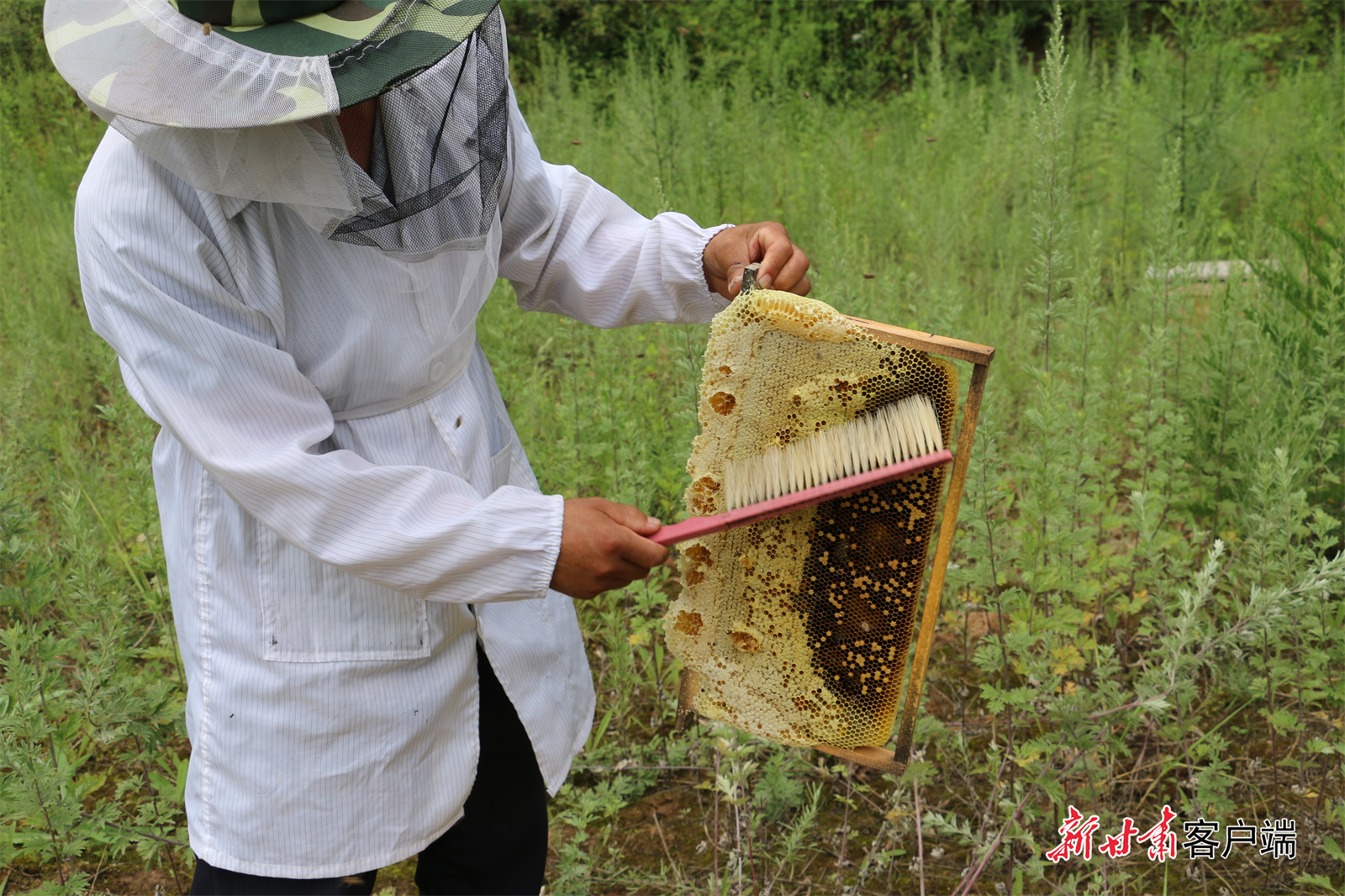 (甘肅秦嶺蜂業(yè)技術(shù)人員取蜜)