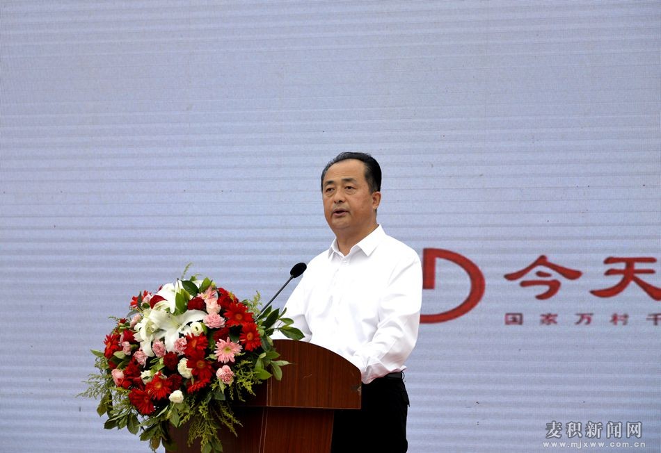 齊中波代表西青區(qū)委書記李清以及西青區(qū)委、區(qū)政府,對活動的舉辦表示熱烈的祝賀,對百忙中蒞臨活動現(xiàn)場的各位領(lǐng)導(dǎo)、各位嘉賓表示誠摯的歡迎。他說,近年來,西青區(qū)和天水市麥積區(qū)深入貫徹落實習(xí)近平總書記重要講話和指示批示精神,在天津市委和甘肅省委的領(lǐng)導(dǎo)下,在天水市委的指導(dǎo)和支持下,堅定不移扛牢東西部協(xié)作的政治責(zé)任,帶著感情和使命,組織實施了一批促發(fā)展、補短板、強弱項的幫扶項目,辦成了一批暖人心、順民意、惠民生的好事實事,在產(chǎn)業(yè)合作、消費幫扶、勞務(wù)協(xié)作、社會動員等方面取得了一定工作成效,開展了許多工作創(chuàng)新,得到了原國務(wù)院扶貧辦和兩地黨委政府的充分肯定。相信此次花牛蘋果宣傳推介活動的舉辦,必將成為深入推進兩地東西部協(xié)作的有效平臺。