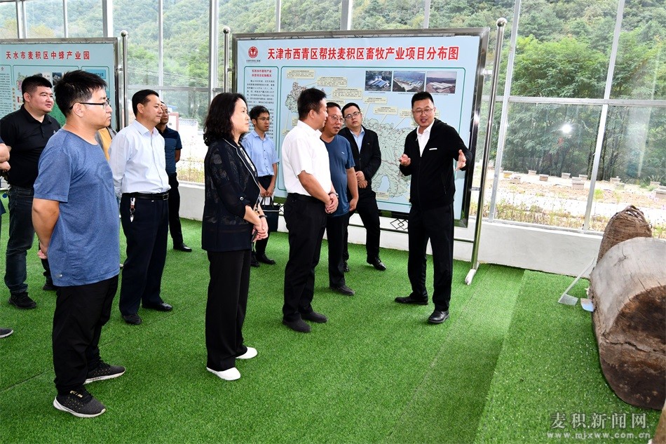 考察組一行先后深入麥積區(qū)黨川鎮(zhèn)甘肅老蜂巢蜂業(yè)有限公司、天水騰飛果業(yè)公司花牛蘋果示范種植基地等地,實(shí)地考察西青區(qū)幫扶農(nóng)業(yè)產(chǎn)業(yè)項(xiàng)目和科技扶貧項(xiàng)目實(shí)施情況以及麥積區(qū)中蜂養(yǎng)殖、花牛蘋果種植等農(nóng)業(yè)產(chǎn)業(yè)發(fā)展情況,詳細(xì)了解麥積區(qū)在農(nóng)業(yè)產(chǎn)業(yè)方面的科技需求。同時(shí)舉辦“科技幫扶大講堂”暨“云端”公開(kāi)課,為麥積區(qū)科技局工作人員、科技特派員代表以及部分農(nóng)產(chǎn)企業(yè)、農(nóng)民專業(yè)合作社負(fù)責(zé)人開(kāi)展果蔬種植、中蜂養(yǎng)殖等技術(shù)培訓(xùn),推廣“津科幫扶”“津科助農(nóng)”等在線科技幫扶平臺(tái)。