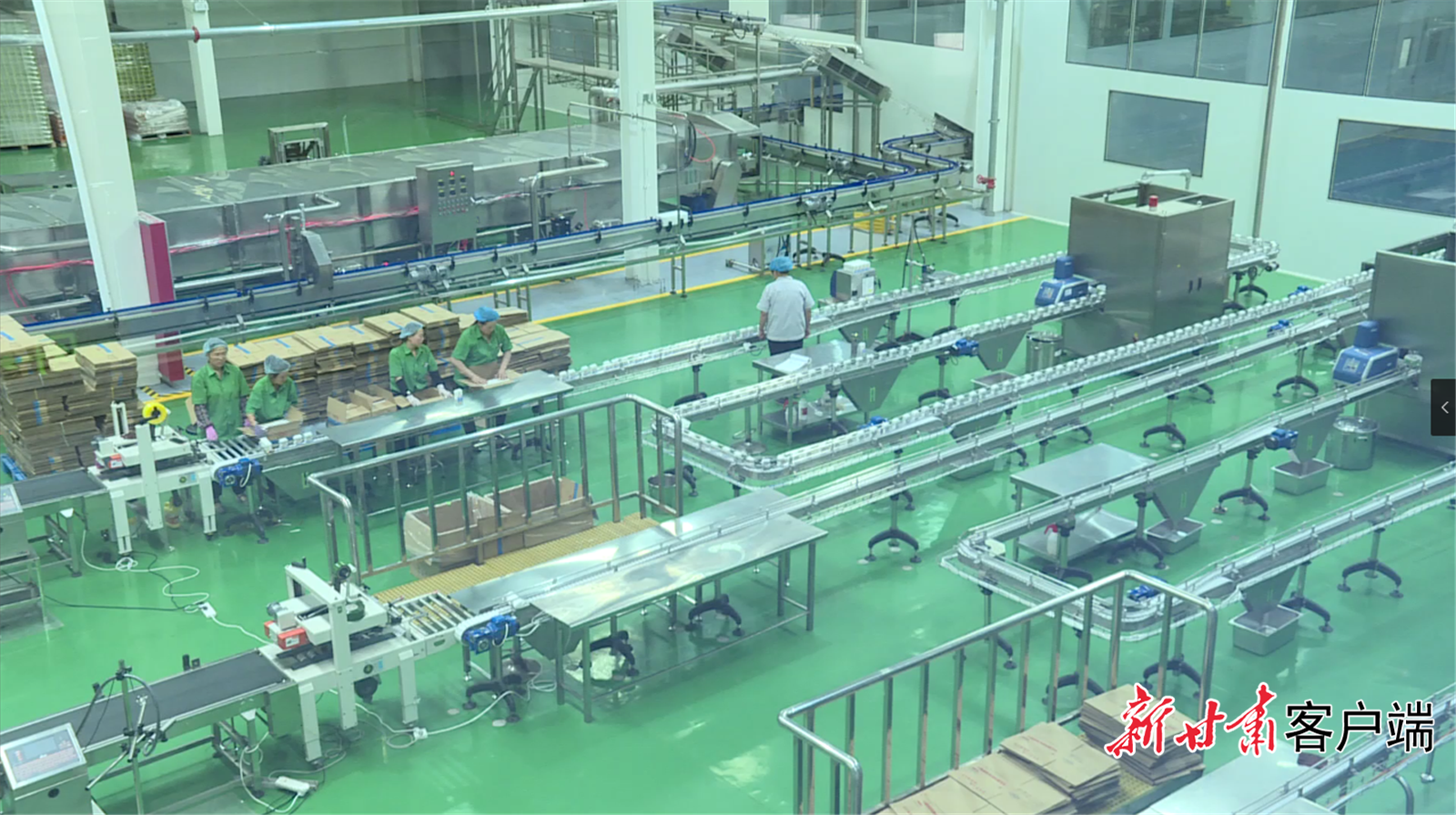 在麥積區(qū)長(zhǎng)城果汁集團(tuán)股份有限公司的生產(chǎn)車間內(nèi),自動(dòng)化生產(chǎn)線開足馬力,一個(gè)個(gè)花牛蘋果經(jīng)過(guò)挑揀、清洗等程序后,變身為美味的蘋果汁。生產(chǎn)車間外,前來(lái)運(yùn)送花牛蘋果的貨車絡(luò)繹不絕,紅色的果子堆成了一座座小山,工人們正忙著卸貨裝運(yùn)。
